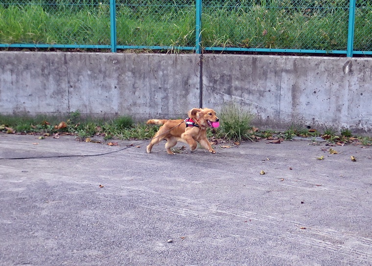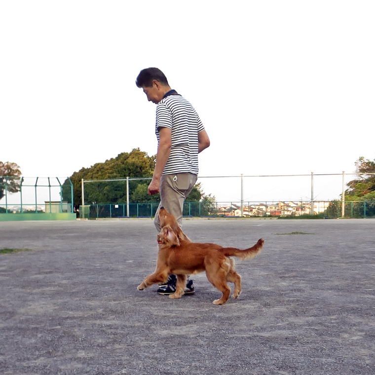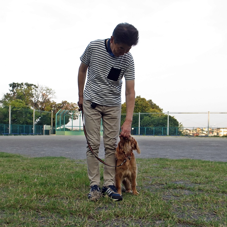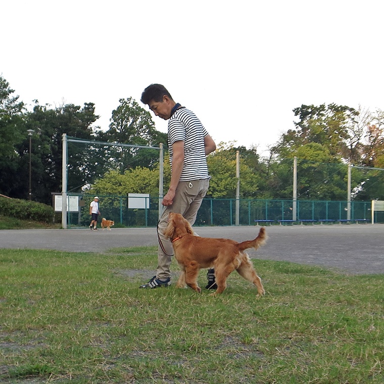 今日のかのんちゃんのレッスンは、前回に引き続き公園の刺激の中での基礎トレーニングです。今日のフィールドは、グラウンドでしたので、今までの芝生の上よりも誘惑刺激が少ない為に、飼い主さんへの集中の時間も出来てきていました。ただ、他の犬やサッカーボールをける少年の刺激には、飼い主さんのコマンドは届かない状況でしたが、現在地点を確認する為のトレーニングとしては、良い経験でした。