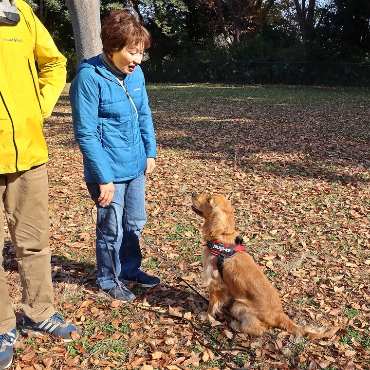 前回のレッスンでもかのんちゃんの先読み行動による解除のコマンドの理解を深める対応についてトレーニングを行いましたが、この先読みの大きな要因は、飼い主さんのトリーツの使い方にあるようです。