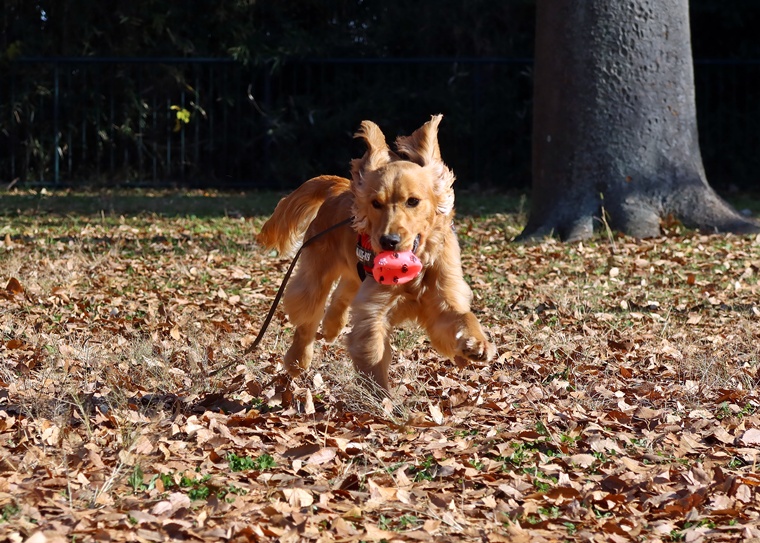 前回のレッスンで導入したレトリーブの「Take」のコマンドは上手になっています。あまり「Sit」させてからボールを投げる事だけではなく、単純なボール投げの繰り返しも時々入れるようにして下さい。