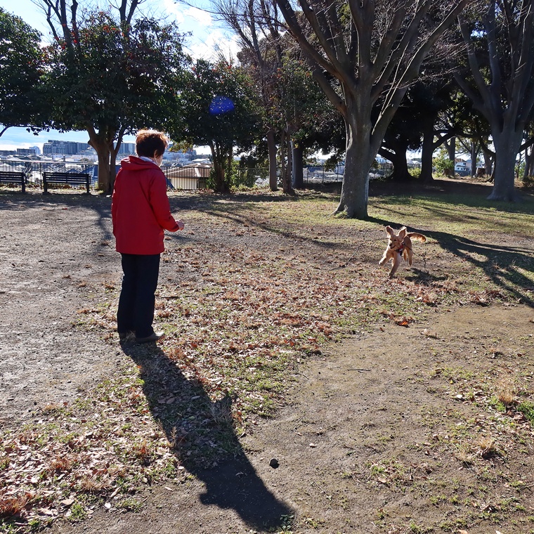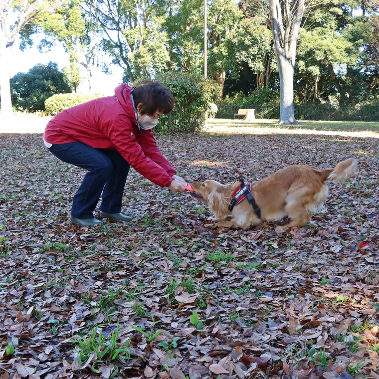 単に、ボールを投げるだけではなく、引っ張りっこをして何度か引っ張りっこで負けてあげる事でレトリーブへの意欲が高まります。ワンパターンで「Sit」で投げて「やめ」でボールを取る動きには、楽しさが少なく、ボールへの意欲も一定の回数になり易くなりますので注意して下さい。また自宅でのボールやオモチャの管理も大切です。現状は、かのんちゃんが自由にオモチャを手に入れられる環境のようですので、今一度、環境整備を行い、飼い主さんがイニシアティブを握る為の対応をしていきましょう。