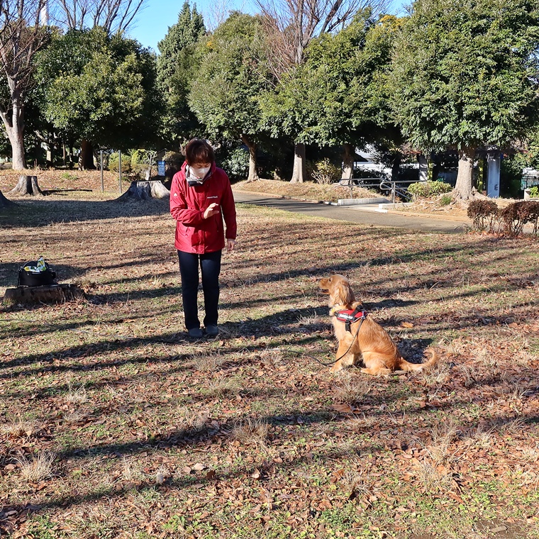 ご自宅で出来ているコマンドも誘惑刺激の強い屋外では、ご自宅と同等の実行性や集中が維持できなくなります。この刺激レベルの差が、トレーニングのレベルの差になりますし、実行性の差になります。この差を埋める為に、期待感のある飼い主さんになる為の、いくつかのルールがりますので、出来なコマンドを屋外で出してコマンドを無視させることをするのではなく、屋外でもご自宅と同程度の動きができるようにトレーニングレベルを下げて実行させ、どこでも同じような動きができるように考えていきましょう。屋外では、アイコンタクトが維持できませんし、成長と共にスパニエル系の鳥への反応が顕著に出てきていますので、今後も反応の変化に注意を払いながら、安定したコマンドの実行性を目指せるように焦らずに丁寧にトレーニングをしていきましょう。