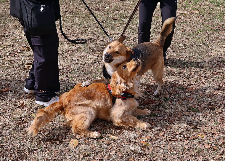 とても難しいレベルのトレーニングになりますが、今回のように遊び仲間とのワンプロなどの機会を利用してトレーニングをする事で飼い主さんからのコマンドを優先できるようになります。