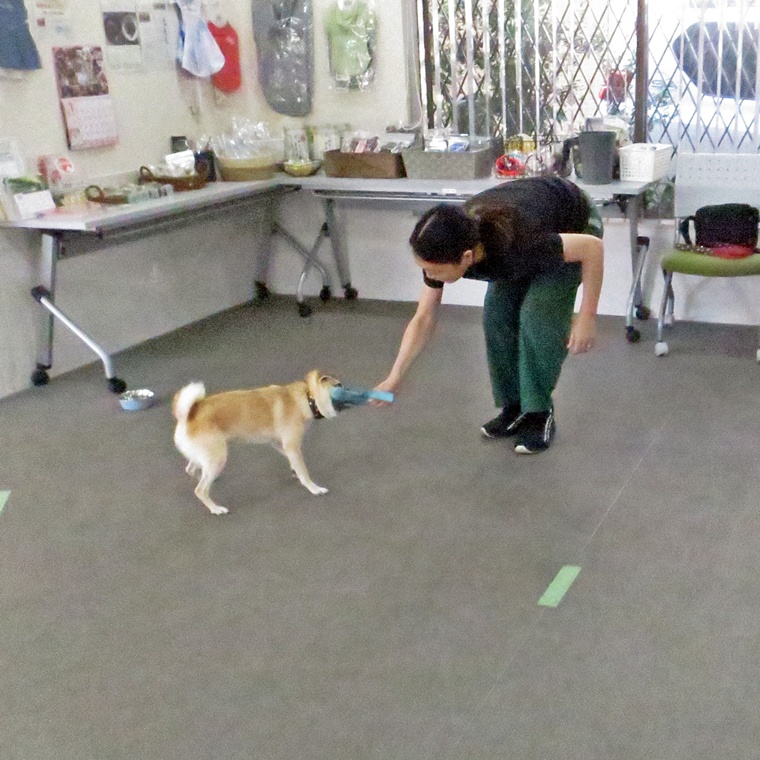 現在、オモチャ等は、管理しているようですが、オモチャを使う遊び方を飼い主さん自身が理解できていませんので、「持って来て」というレトリーブが教えられていません。