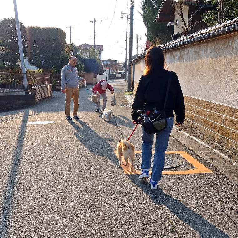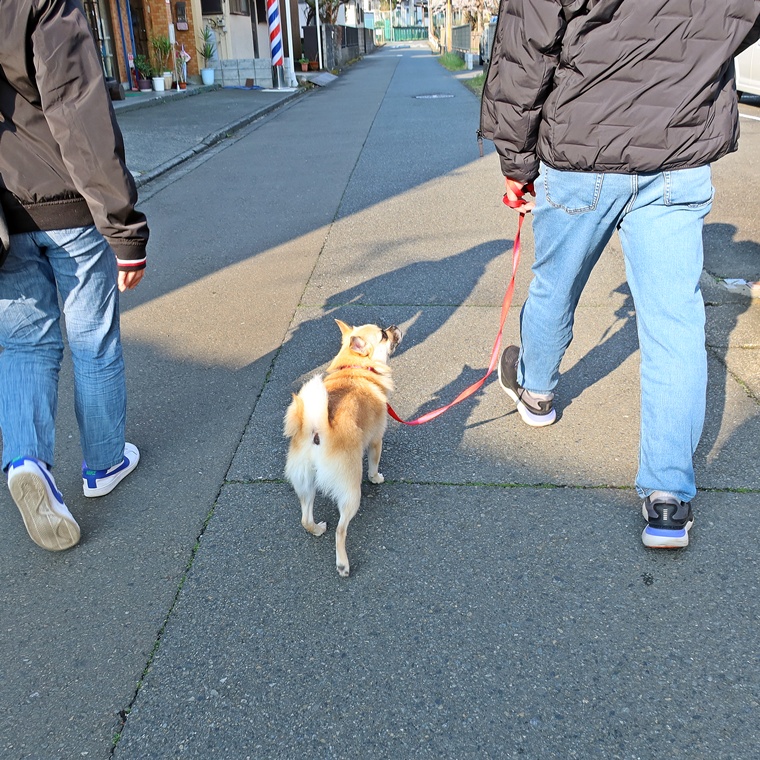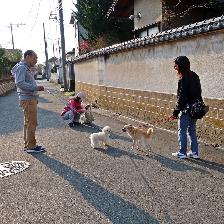 今日の、こむぎちゃんのレッスンは、ご自宅付近でのお散歩トレーニングです。お散歩の際のいくつかの課題に対しての現状の確認と基本的なコマンドのトレーニングを行いました。