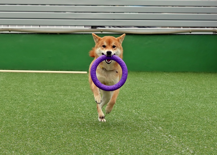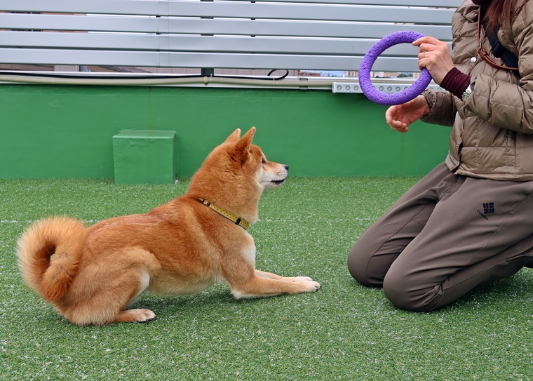 今日のクースケ君のレッスンは、前回のレッスンで理解し始めた「レトリーブ」や「ヒール」のコマンドの強化と「待て」の強化トレーニングなどを行いました。