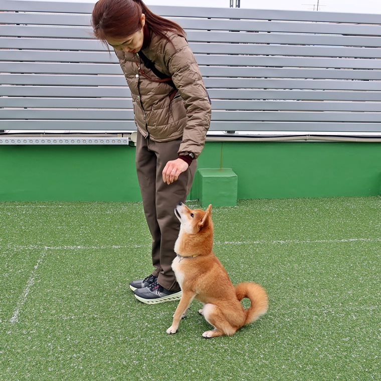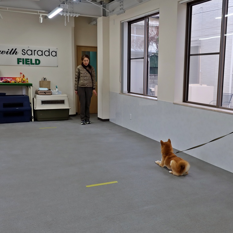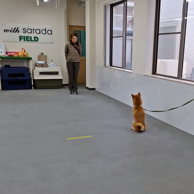 「座って待つ」「伏せて待つ」の2つの動作のトレーニングを行いましたが、飼い主さんへ集中している事が大前提となります。よそ見をすると自主解除になりますので距離を延ばしすぎないようにしてください。また飼い主さんがクースケ君の元に戻る際の姿勢や手の動かし方なども先読みの要因になりますので注意して下さい。