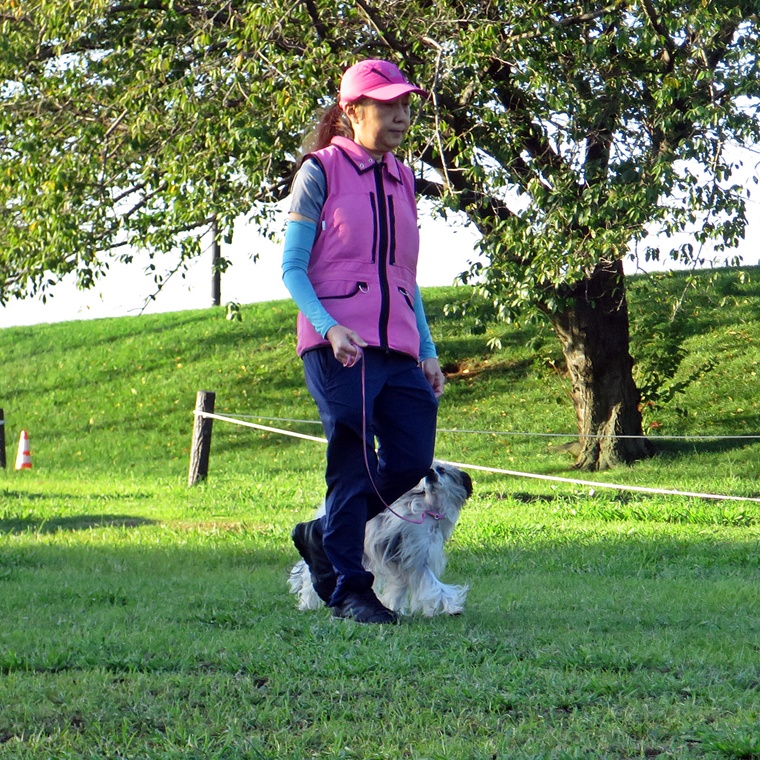 紐付き脚側行進の動きは良くなってきていますが、指導手の歩度がレティちゃんに合わせがちですので注意していきましょう。気温が下がると、伏臥の実行性が低下しますので、脚側停座の集中も含めて観察力を高めて下さい。課目終了時の脚側停座の修正は、今後も丁寧に進めて下さい。