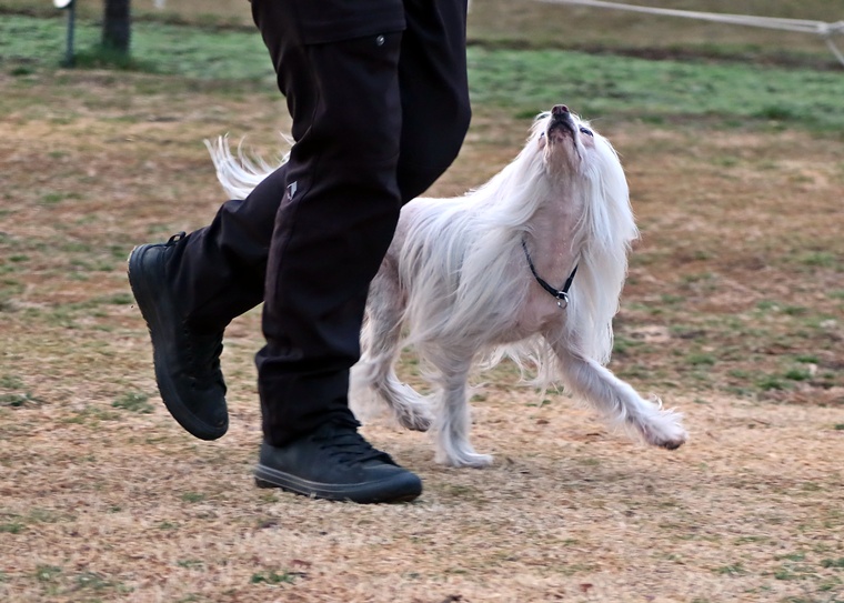 脚側行進の強化トレーニングを中心に行いました。特に紐なし脚側行進での集中の維持を目的として、トレーニングレベルを下げながらも、指導手がアーシャちゃんに無意識に合わせている行動を修正しながら同調性を高めました。また課目間の時間の使い方なども考えながら、伏臥と立止の課目間の集中を維持できるようにトレーニングをしていきましょう。