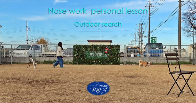 FIELDに到着されてトイレを促すと、すぐに吠えが始まり自己主張をし始めます。ご自宅でのゲージの中のトイレの認識は安定していないようですので、まずは成功事例を積み重ねながらトイレのコマンドと場所の認識を高めましょう。今日のレッスン内でも2回のトイレが全て成功していますので、飼い主さんのルーク君の動きの観察力を高めることが必要です。