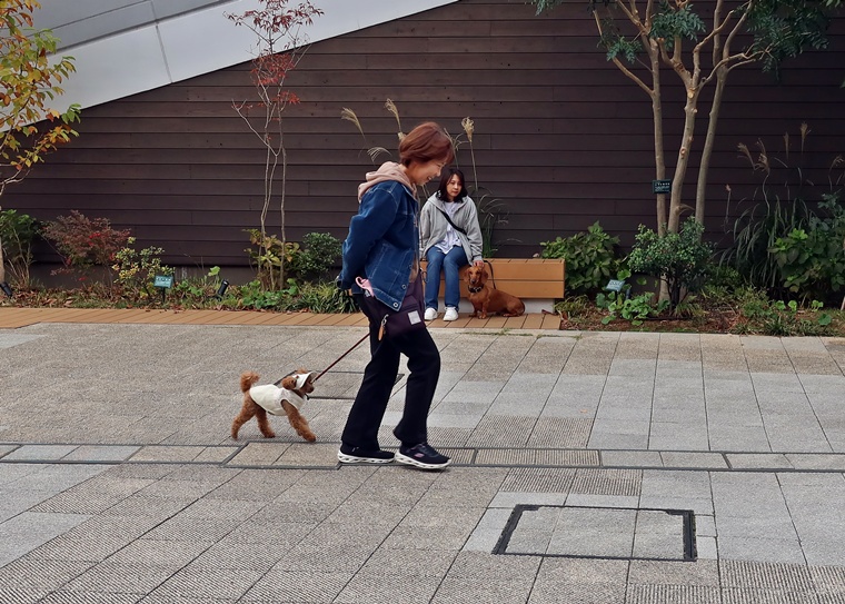 日常のお散歩の様子を伺うと、とにかく早く歩くことを心掛けているようですので、今日のレッスンでも全体的に早歩きになり、リードはルーク君が引き気味でテンションが常にかかっている状態です。