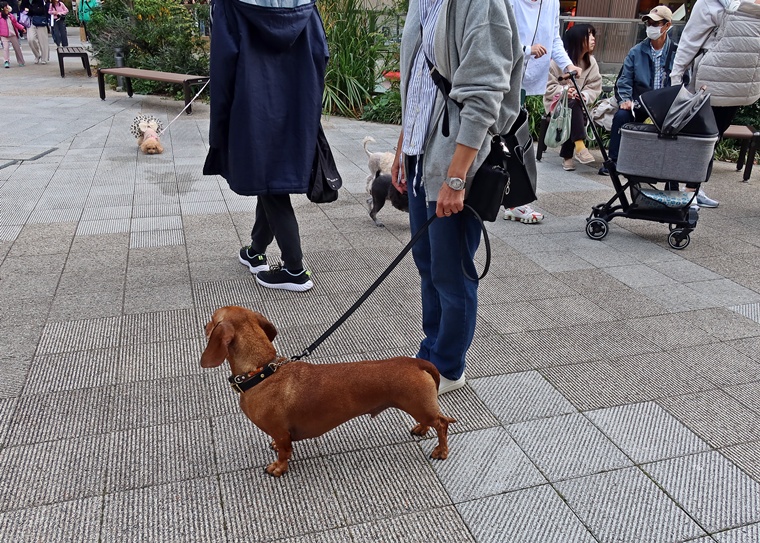 今日のルーク君のレッスンは、前回と同様に刺激レベルの高い環境下でのパブリックトレーニングです。他の犬とのすれ違いの際の興奮のコマンドのコントロールと刺激を無視できた際の飼い主さんの誉めなどがスムーズに行えるようにする為の実践トレーニングを行いました。