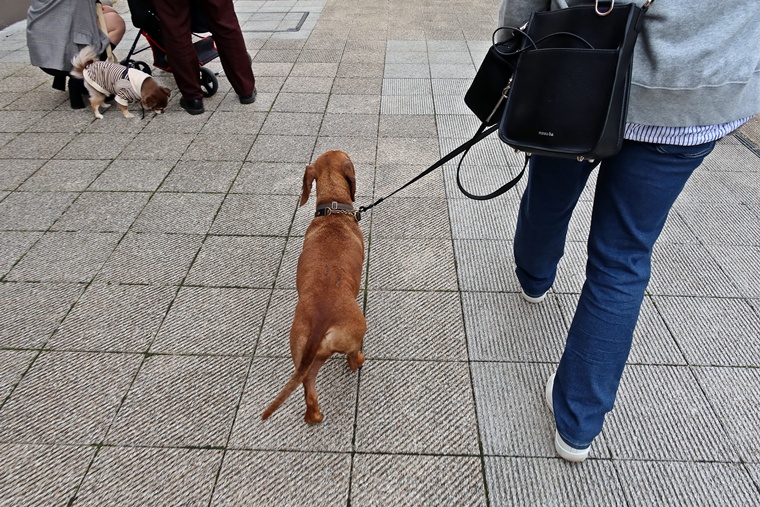 文字通り「ゆっくり歩く」という動作に変更し、リードは張らずにルーズな状況を維持できる歩き方をマスターしていきましょう。また飼い主さんの進む方向性もルーク君に合わせずに真っすぐ進むように心掛けて下さい。