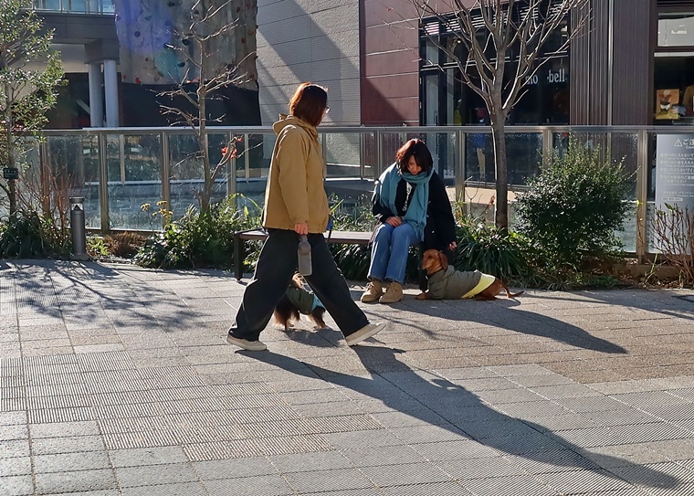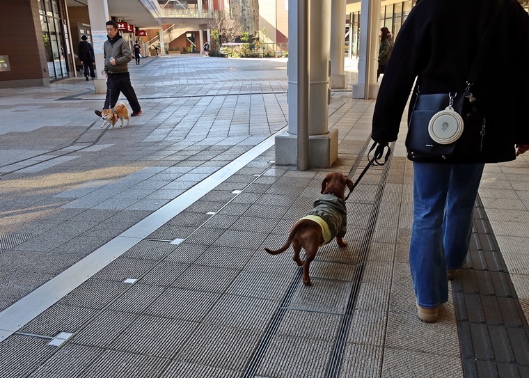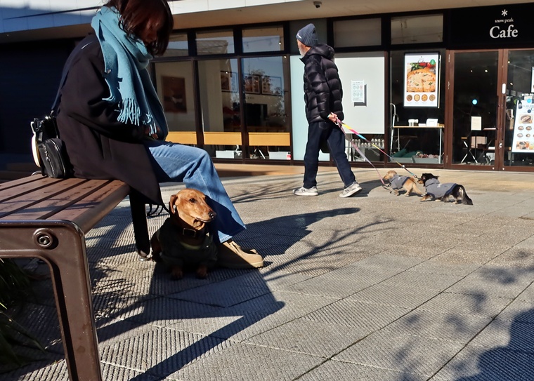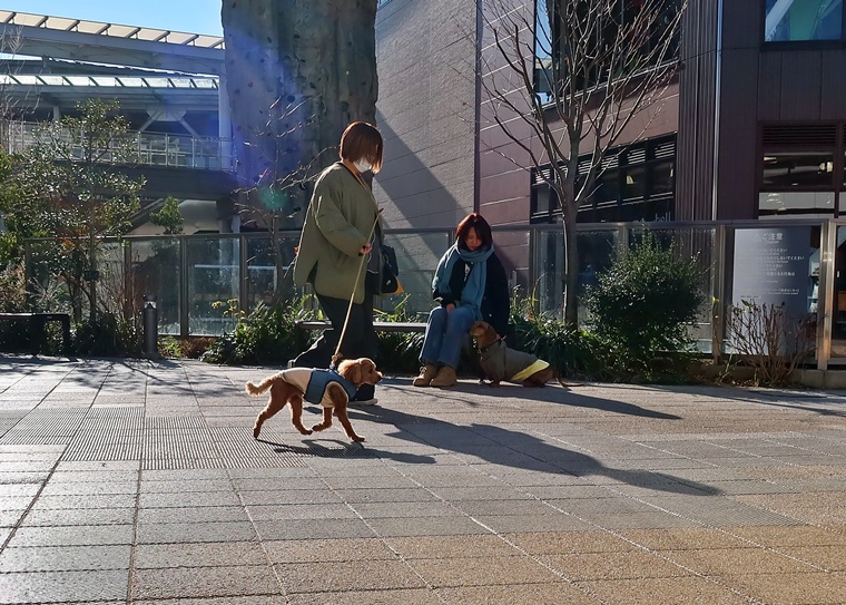 今日のルーク君のレッスンは、前回と同様に刺激レベルの高い環境下でのパブリックトレーニングです。今回は、朝のお散歩ラッシュ時間帯から少しズレてしまいましたので、すれ違いの機会は、それほど多くありませんでしたが、アンダーの姿勢での待機も含めたシチュエーションでのトレーニングをする事ができました。
