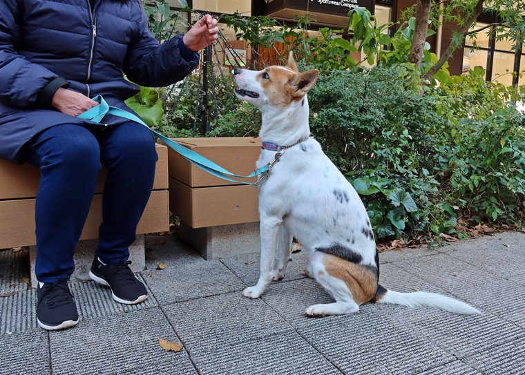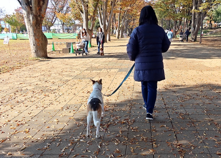 飼い主さんがイニシアティブをにぎり、飼い主さんの進む方向にマロン君が同調できるようなお散歩を実践すると、今までの課題は改善されます。いっぱい張っていたリードも余裕を持って歩くことができています。