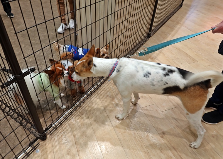 大型商業施設などの環境下で今まで経験した事の無い事を無理なく経験させ、メンタル的な成長を促すことは、今後の犬生には必ずプラスに働きます。