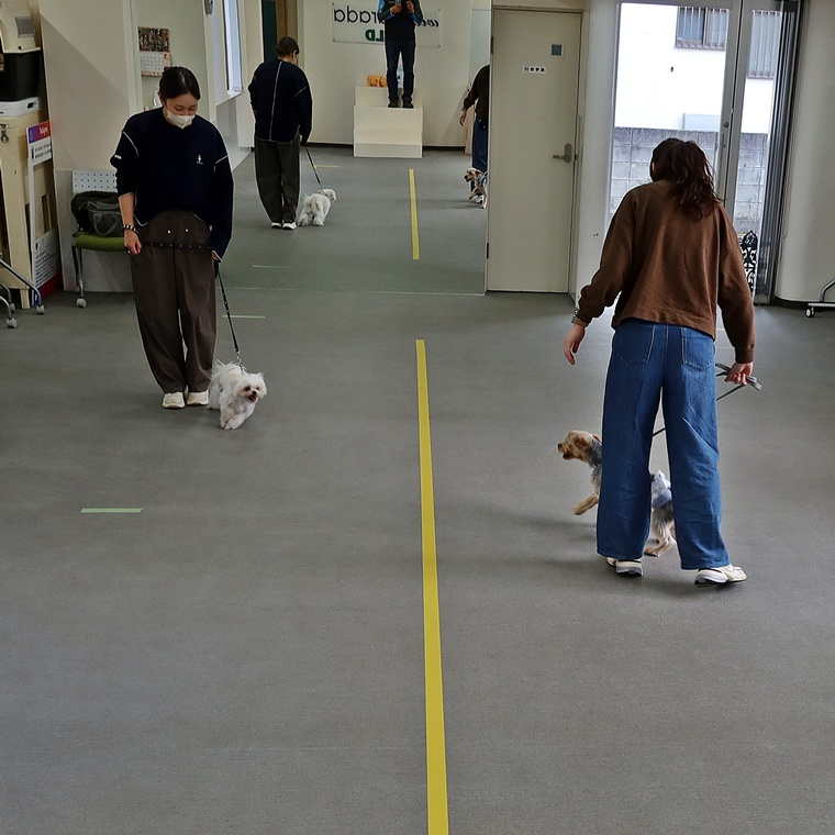 屋外での実践トレーニングでは、匂い嗅ぎへの意識が強く表れる場面もありましたが、飼い主さんが自信を持ってコントロールできるようになると、一定のルールの理解が深まります。「匂いを嗅いでOK区間」と「匂い嗅ぎNG区間」をランダムに設定しながら、飼い主さんのリーダーシップを発揮できる関係性にしていきましょう。