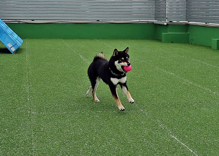 ボール投げも大好きですが、らく君の要求で遊びが始まることは良いスタートとは言えませんので、ボールに対する意欲を良い方向に引き出せるような遊びの中のルールも考えてみましょう。投げるリズムを、少し変化させたり「お座り」「待て」のコマンドを加えてみるなど、楽しい中にワクワク感を更に付け加えられるように工夫してみましょう。