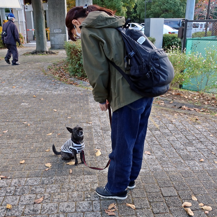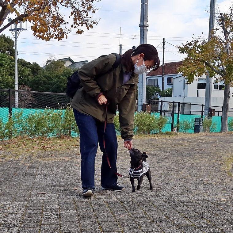 お散歩も以前よりも匂い嗅ぎが多くなっていますので、マーキング行動も頻繁になります。以前のレッスンでのお散歩トレーニングでのルール作りも、ラムネ君の行動に合わせたルールになっていることで、飼い主さんに主導権がないお散歩になっています。