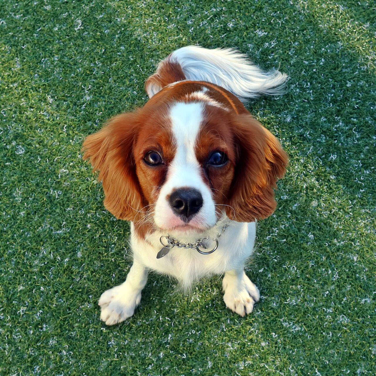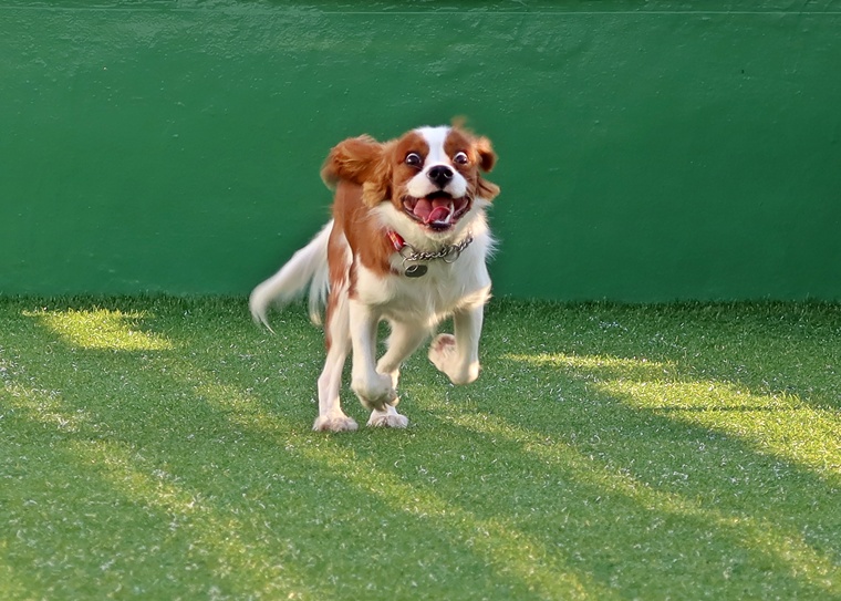 ルールが理解できるようになると、自然に扇ちゃんの視線は飼い主さんに向くようになりますので、タイミングよくトリーツを与えて、「ゆっくり」のポジションを理解させてください。