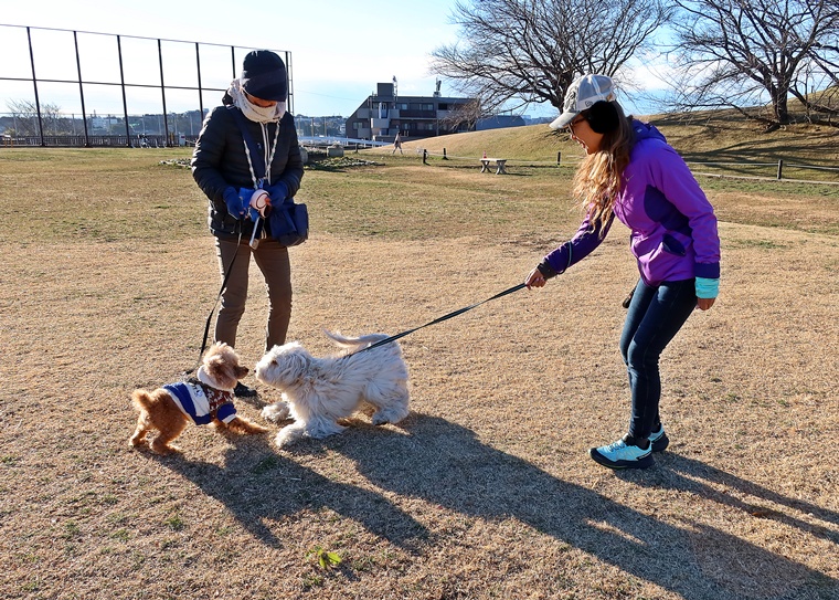 飼い主さんのコマンドが優先できたら、報酬として遊ばせてあげる事も時には必要です。そして、この遊びの最中にも「おいで」のコマンドで呼び寄せて、一旦クールダウンさせてから、また遊びを再開させるという1ランクアップした飼い主さんの対応ができると、遊びの最中も飼い主さんからの呼び戻しのコマンドを意識できるようになります。