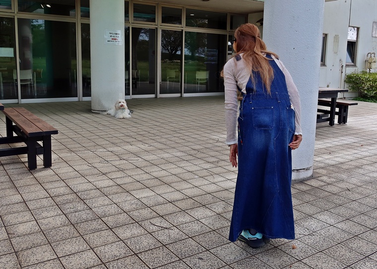 遠隔の「お座り」から「伏せ」の姿勢への移行のトレーニングです。少しずつ距離を延ばしてトレーニングをしましたが、距離以外にも刺激が加わると、なかなか実行できませんでしたので、環境刺激が加わっても飼い主さんのコマンドが優先できるように日頃のからルール作りを進めていきましょう。次のステップは、「伏せ」から「お座り」への姿勢移動のトレーニングを近い距離からチャレンジしてみて下さい。