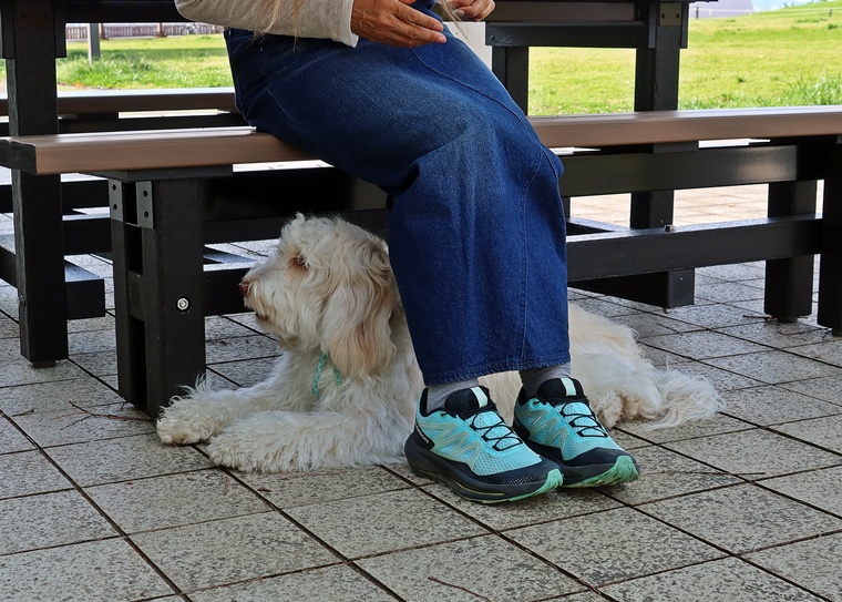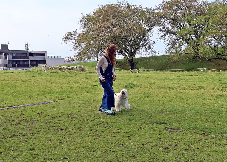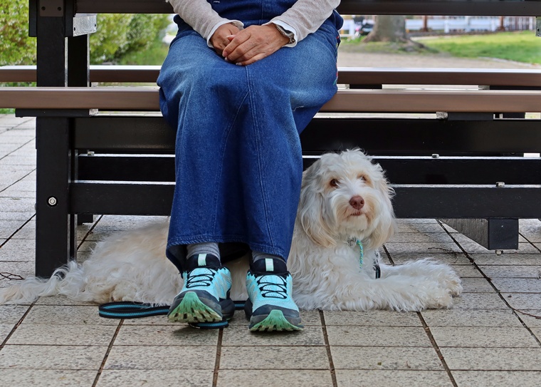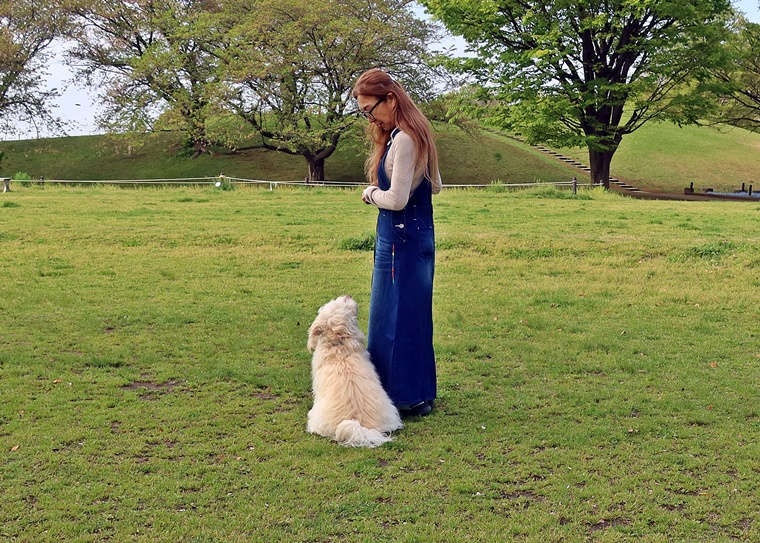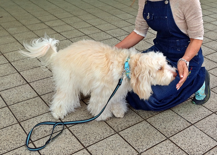 新しいコマンドのトレーニングとして「アンダー」の基礎トレーニングを行いました。カフェに行く機会が多いシャンティ君と飼い主さん。実用的なコマンドをスムーズにできるようにして、カフェでの落ち着いた時間を過ごせるようにしていきましょう。