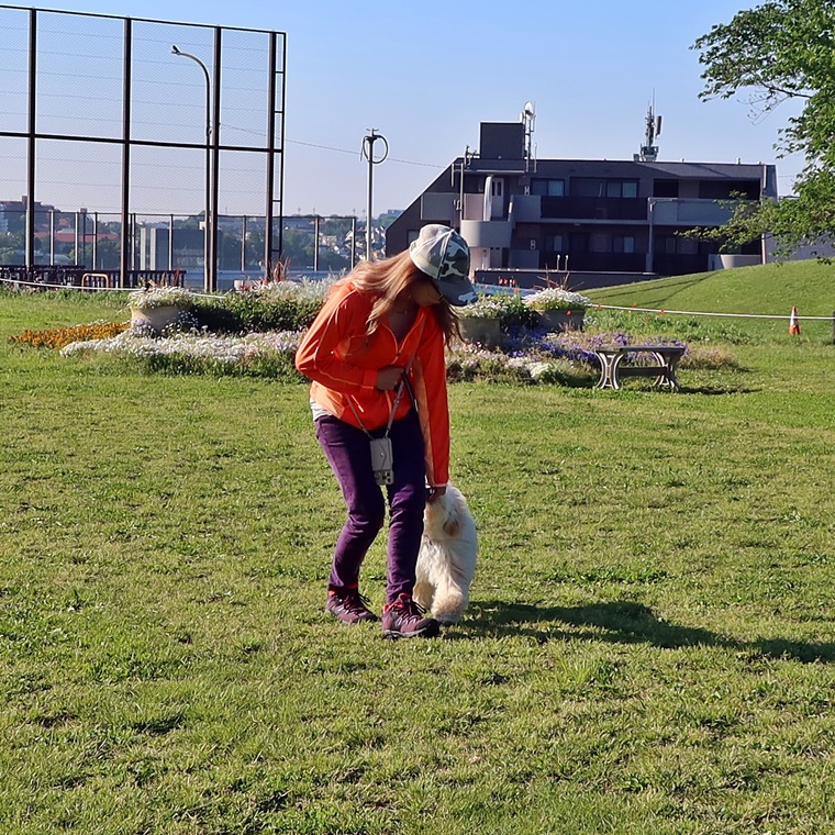 芝生への匂い嗅ぎ拾い食いなどの改善が、中々難しいようですが、「ヒール」の基礎トレーニングを芝生の上や、刺激の好きないタイルやアスファルトの上で丁寧にトレーニングをしていきましょう。
