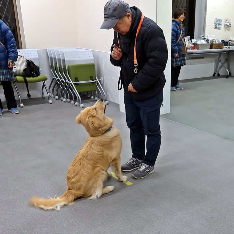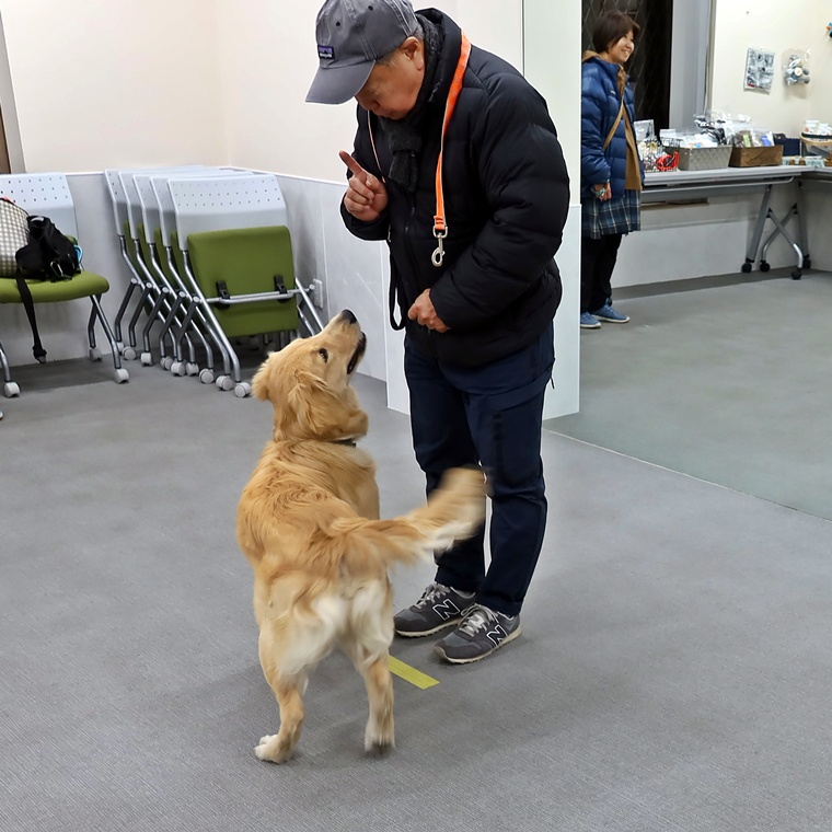 アテンションコマンドと「Come」への反応は、とても良く素直に反応してくれています。この反応を今後も維持して安定させる為には、飼い主さんの誉めるタイミングがとても重要になります。