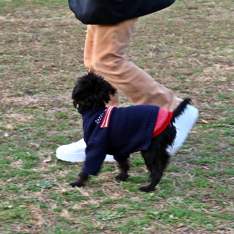 脚側停座と同様に、芝生の上でも楽しく出来ていますが、指導手が真っすぐに脚側行進をせずに、うららちゃんの進ん方向へ寄せて進んでいますので、いつしか、うららちゃんは指導手へのアイコンタクトが無くなります。