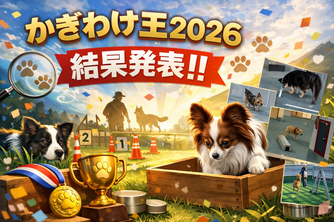 NoseWork Academy主催ノーズワークタイムトライアル『かぎわけ王決定戦2026』2026年1月18日(日)開催決定! 🏁目指せ!かぎわけ王!これまでのトレーニングで積み重ねた「集中力」「観察力」「チームワーク」を、実際のサーチで活かす機会として、タイム...