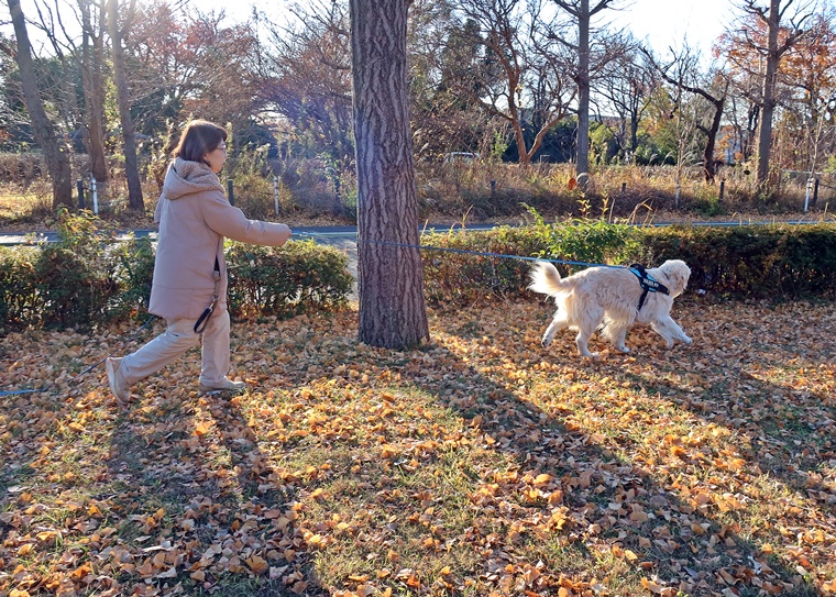 今日のセッションは、距離よりも、横断歩道の通過意識・オープンスペースの臭跡の捉え方・Tトレール・ディストラクション(トレール上の第三者)への反応の確認などを行いました。出来ている項目と、まだ不完全な部分も明確になりましたので、今後のトレーニングの課題として取り組んでいきましょう。