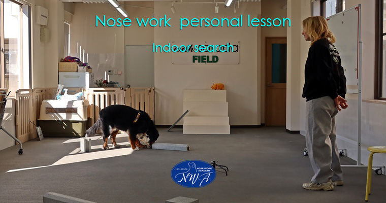 前回のセッションから少し時間がきましたので、基礎的なセッションをメインに行いました。人や犬などのディストラクションが多い事で、臭跡よりも浮遊臭への意識が強く出ていましたので、物品の数を多くしながら、成功体験から夢想君のスイッチが入り易いように進めました。