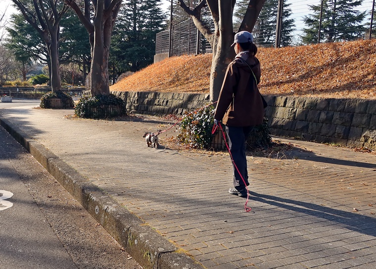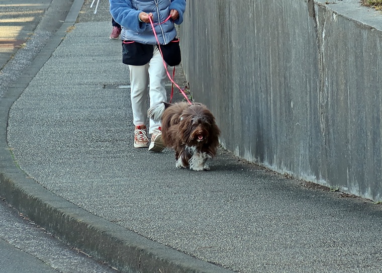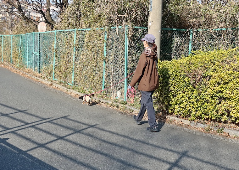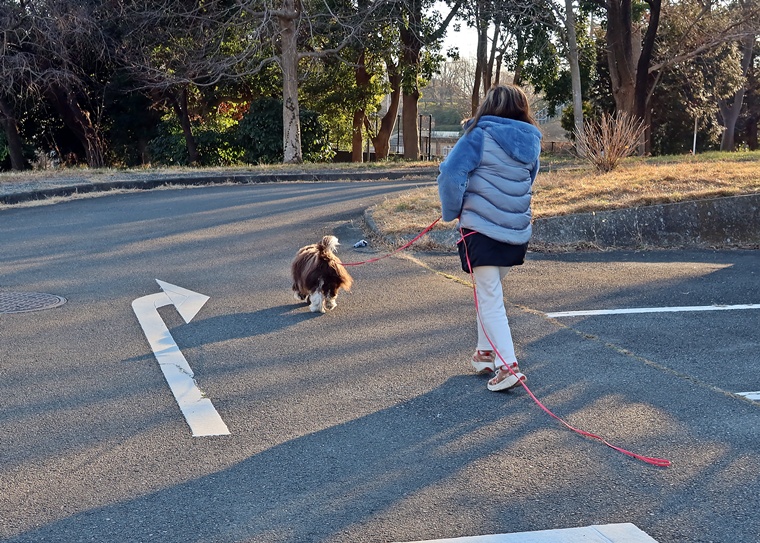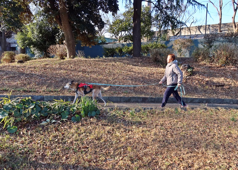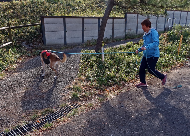 クーちゃんには、アジリティ面で苦手な設定を加えながら、分岐部分の臭跡の選択ができるような設定と、市街地の通行量の多いコースでのトレーリングの設定を行いました。ネガティブ反応も以前より分かり易くなっていますのでハンドラーの判断も早くなっています。