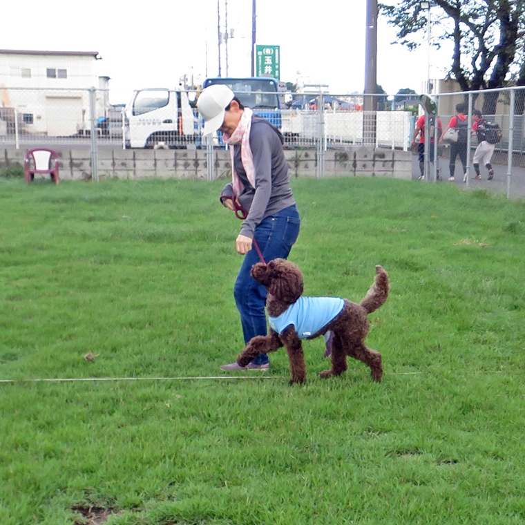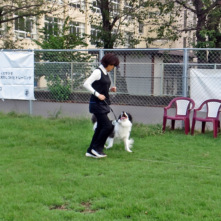 30mの呼び戻しタイムトライアルです。オビチームとステップアップペアは呼び戻し後にヒールポジションでタイムが止まるルールとしました。ビギナーペアは、飼い主さんの傍に到達した時点でタイムを計測しました。結果は・・・・。