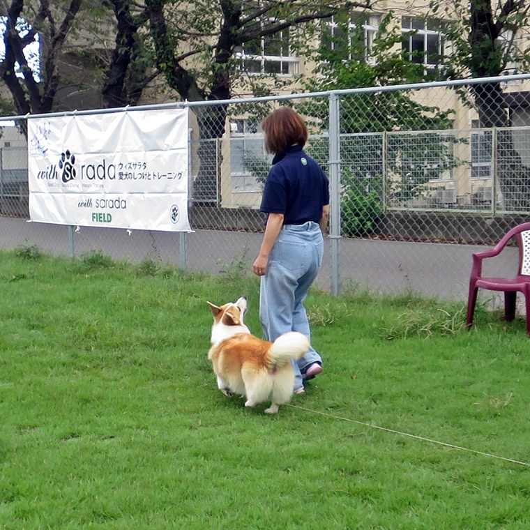 優勝は、しらすちゃんでした。前回のFIELDでのSummer Schoolと2連覇ですね。おめでとうございます。オビチームやステップアップのペアは、ゴール地点でのヒールポジションがルールでしたからタイムロスにはなりましたが、皆さん良く出来ていました。なかなか呼び戻しも距離が延びることで、いつものトレーニングのようにはいきませんが、飼い主さんの魅力やコマンドへの期待感を高めて呼び戻しの完成度を高めていきましょう。