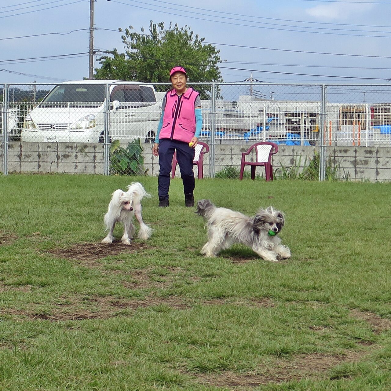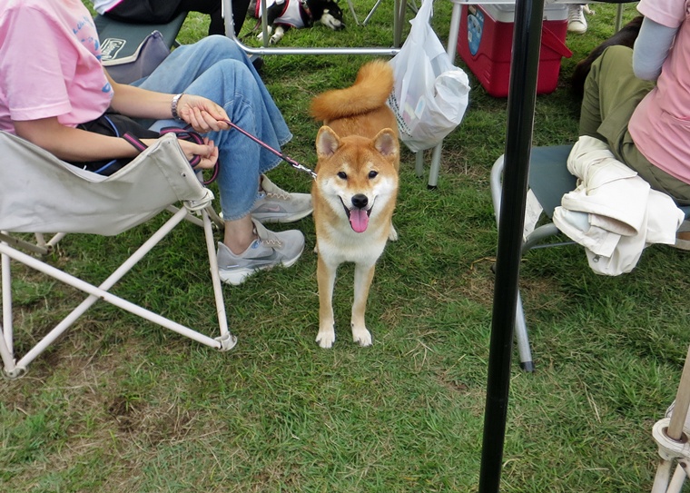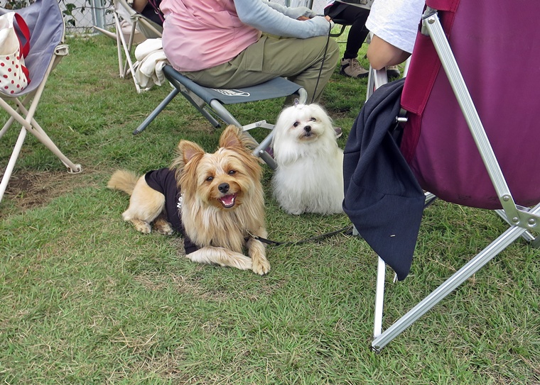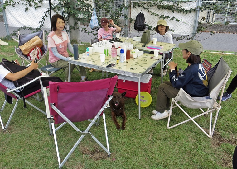 気温が高くなった事もあり、休憩中のレクチャータイムは、今までのトレーニングでの疑問やペアごとの課題への向き合い方、将来、挑戦してみたい事なども含めたフリートークなどです。それぞれのペアの課題や強化ポイントは、どのようにトレーニングを進めるべきか?なぜ、そうなのか?など、普段のレッスンよりも更に深掘りしたお話をさせて頂きました。レクチャー中も、課題行動が表れて、それに対する対処も実際、見ることができていましたので楽しく学べる時間だったと思います。犬たちもマッタリでした。