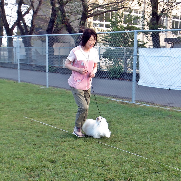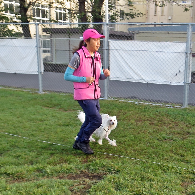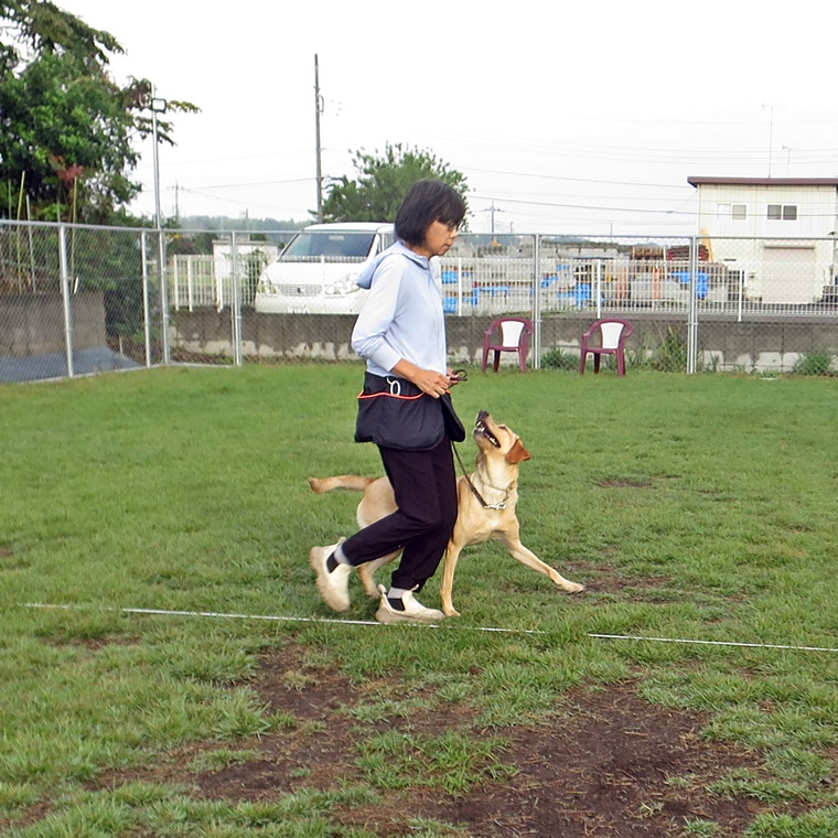 30mの呼び戻しタイムトライアルです。途中に誘惑のオヤツが!オビチームとステップアップペアは呼び戻し後にヒールポジションでタイムが止まるルールとしました。ビギナーペアは、飼い主さんの傍に到達した時点でタイムを計測しました。結果は・・・・。
