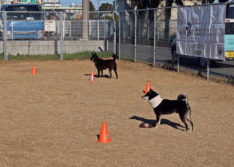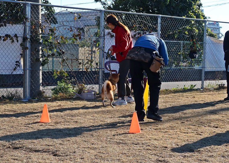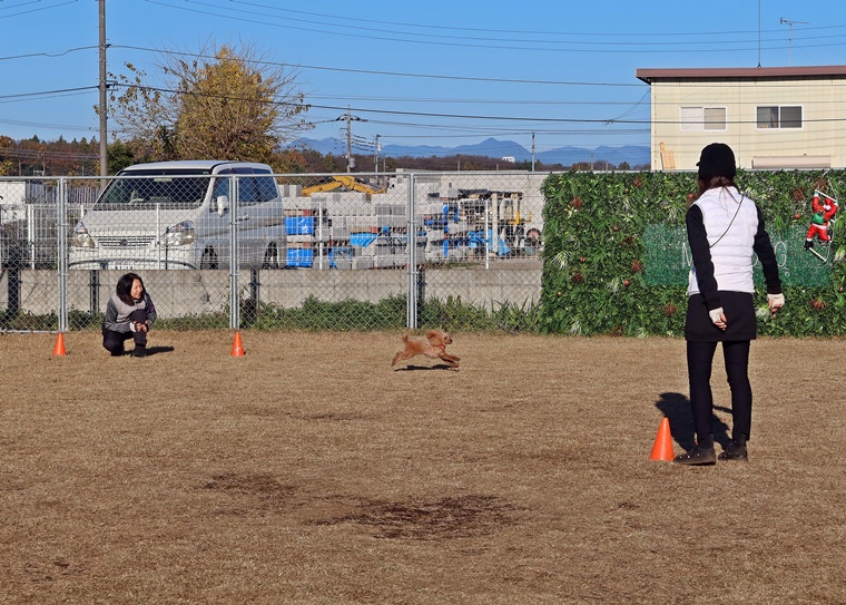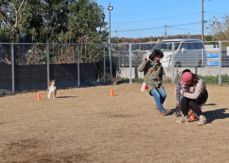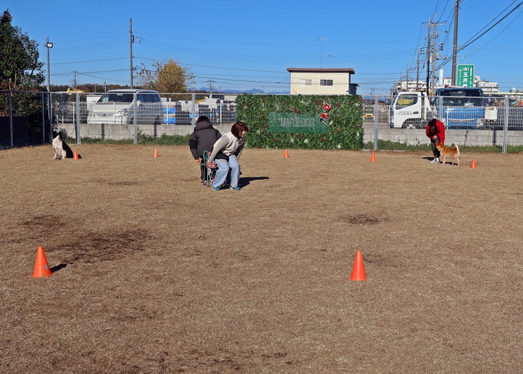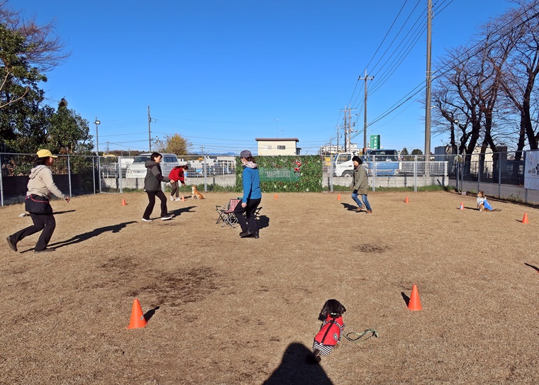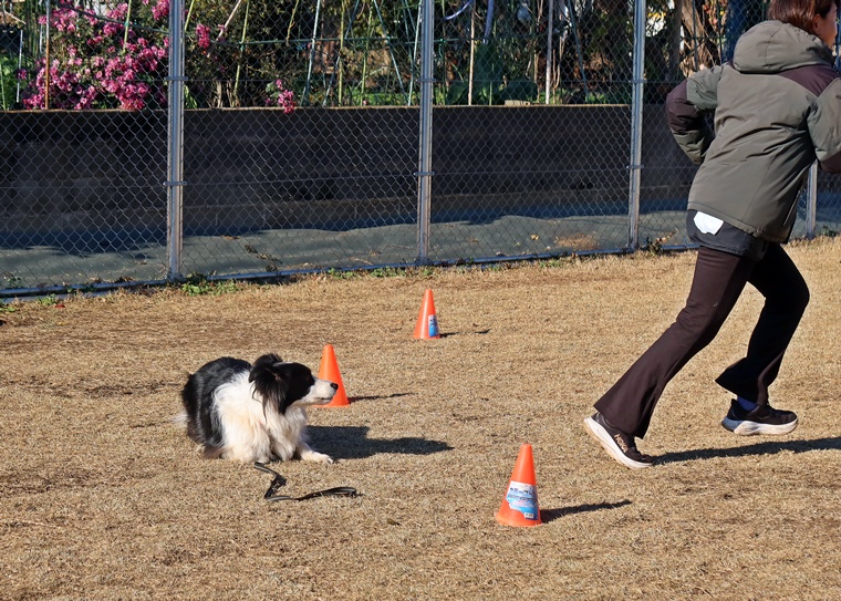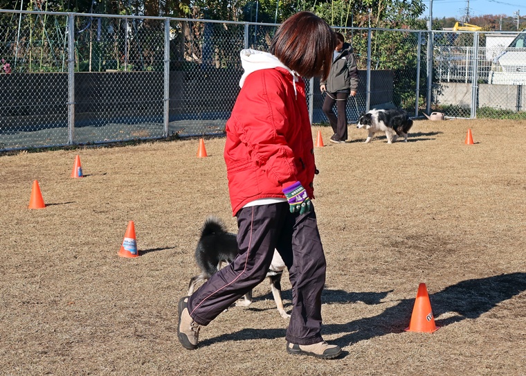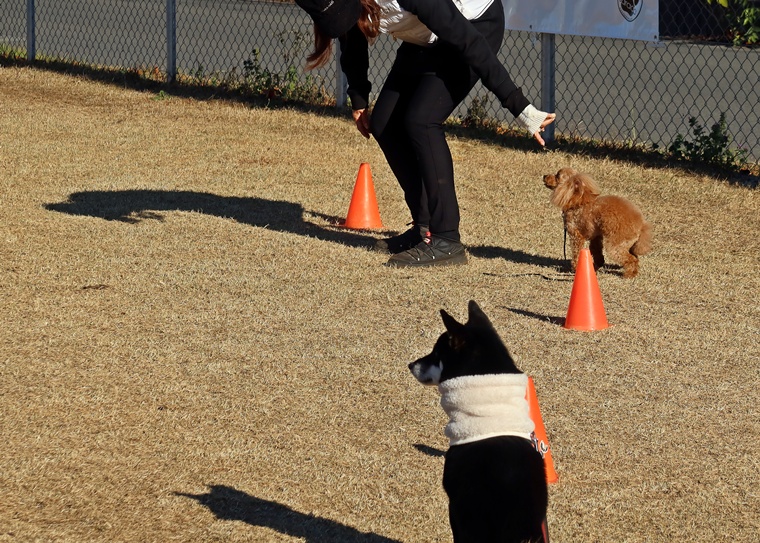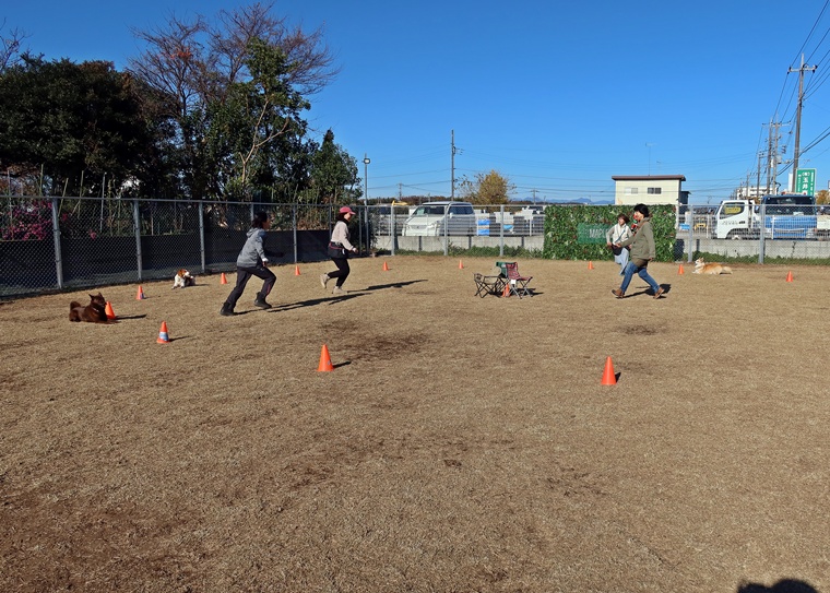 今回の呼び戻しタイムトライアルは、誘惑無しパターンと、誘惑ありパターンの2戦で戦って頂きました。このゲームも、参加したペアは確実に飼い主さんの元へ戻れるようになり成長を感じました。