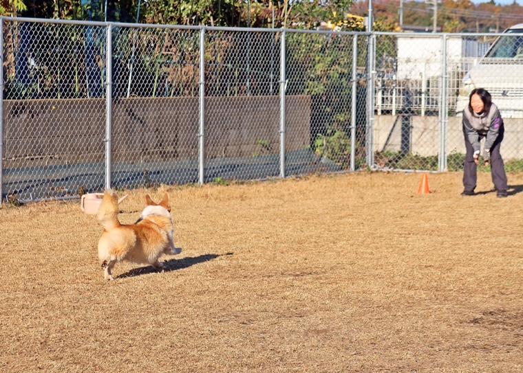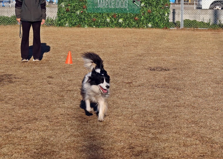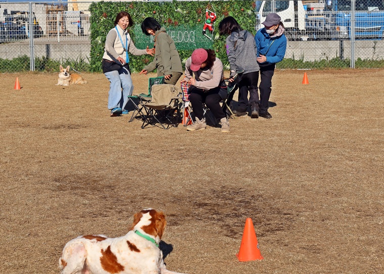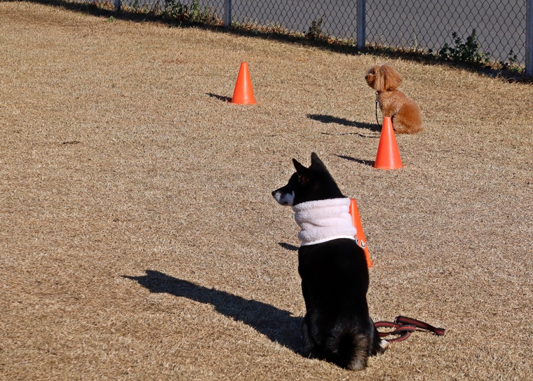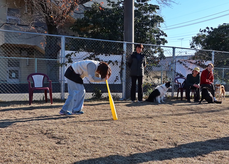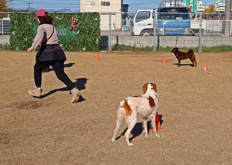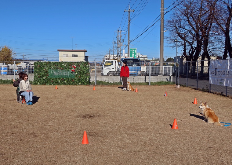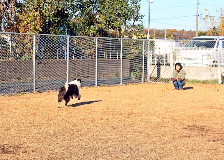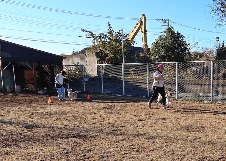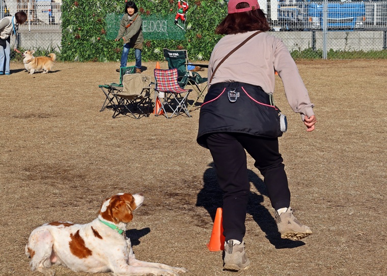 今回の呼び戻しタイムトライアルは、誘惑無しパターンと、誘惑ありパターンの2戦で戦って頂きました。このゲームも、参加したペアは確実に飼い主さんの元へ戻れるようになり成長を感じました。