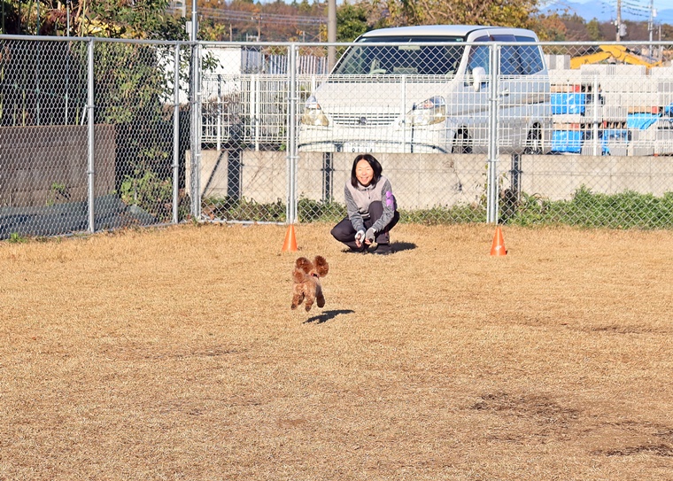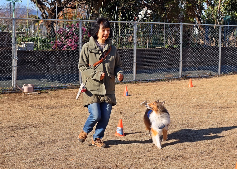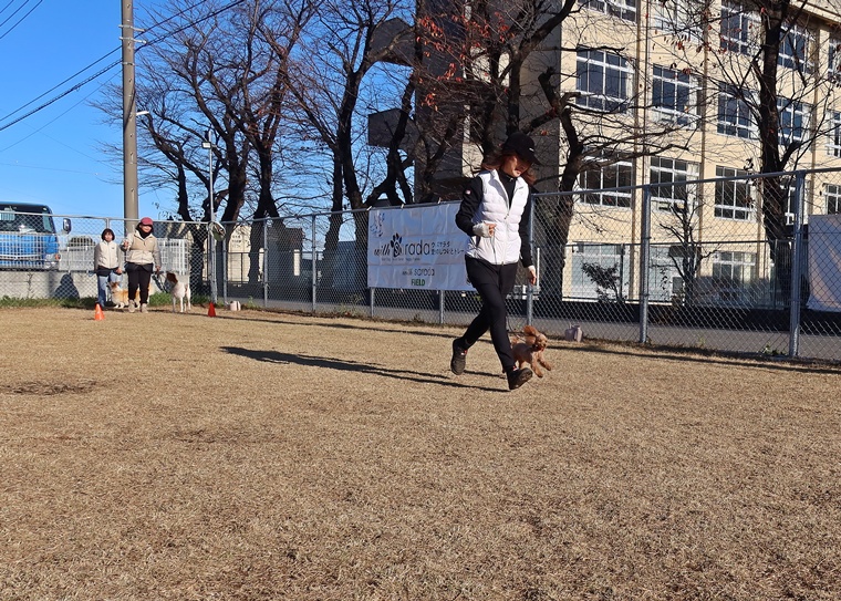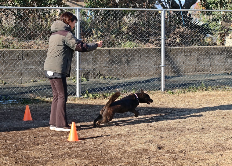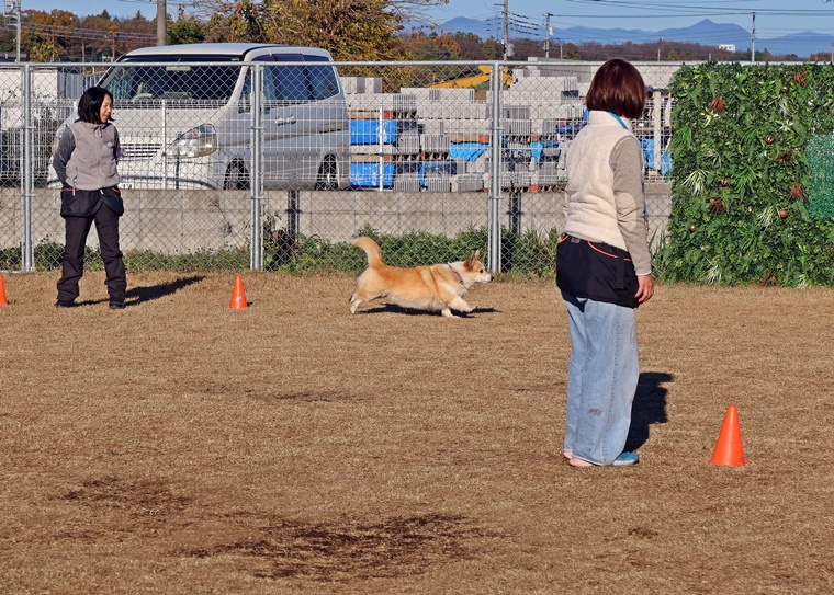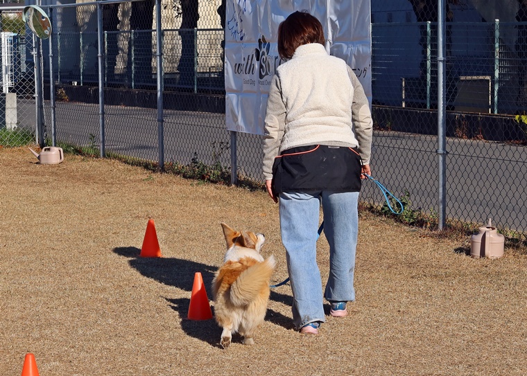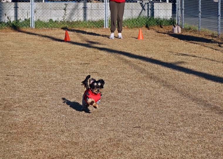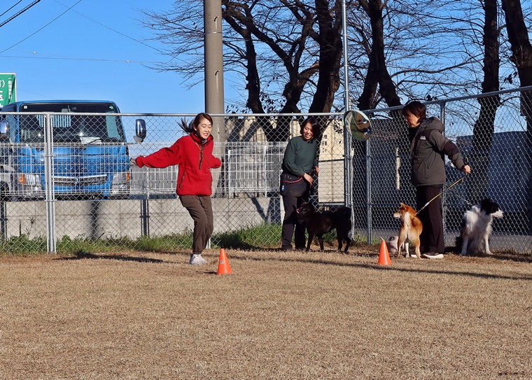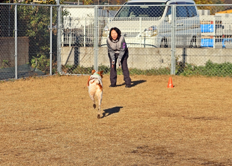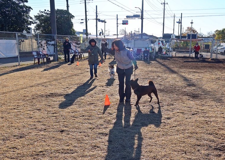 今回の呼び戻しタイムトライアルは、誘惑無しパターンと、誘惑ありパターンの2戦で戦って頂きました。このゲームも、参加したペアは確実に飼い主さんの元へ戻れるようになり成長を感じました。